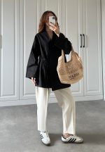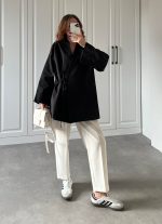 Taş Yandan Bağlamalı Gabardin Kimono Ceket