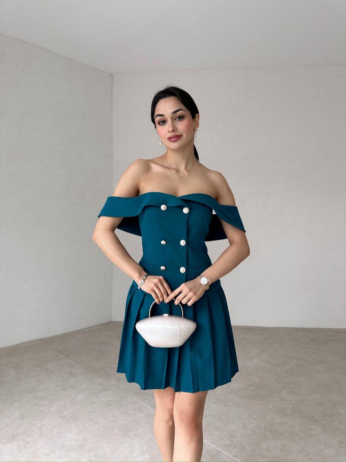 Ana Sayfa ÇOK SATANLAR Su Yeşili Düşük Omuzlu FETTER Takım