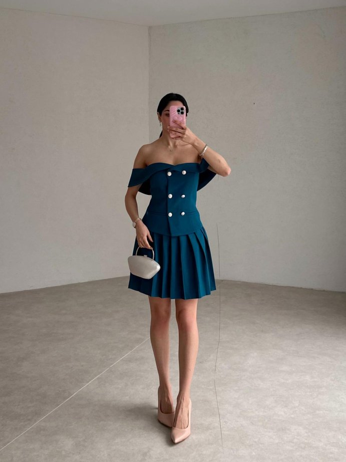 Su Yeşili Düşük Omuzlu FETTER Takım