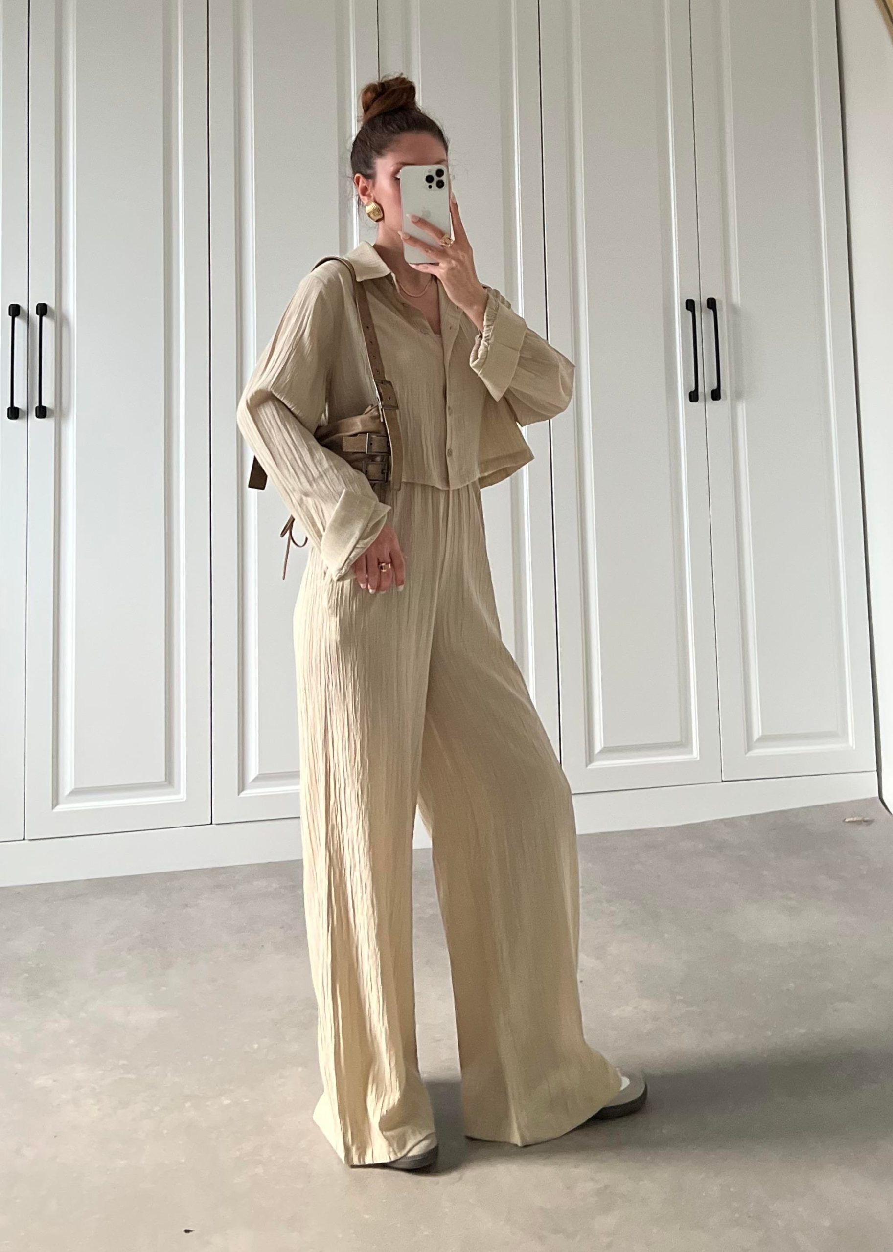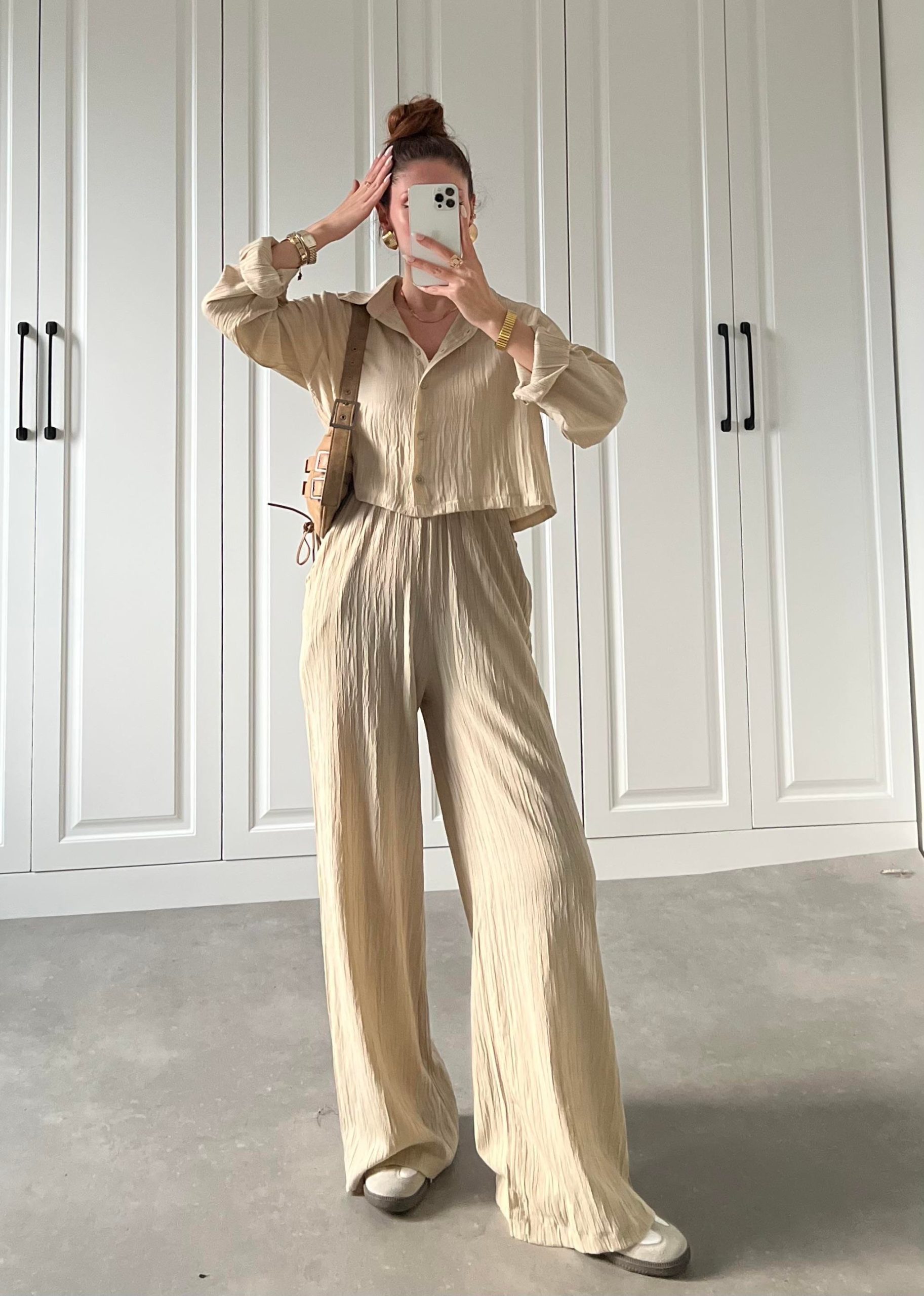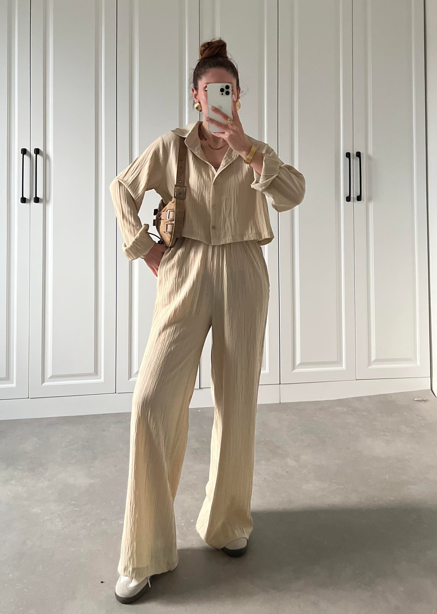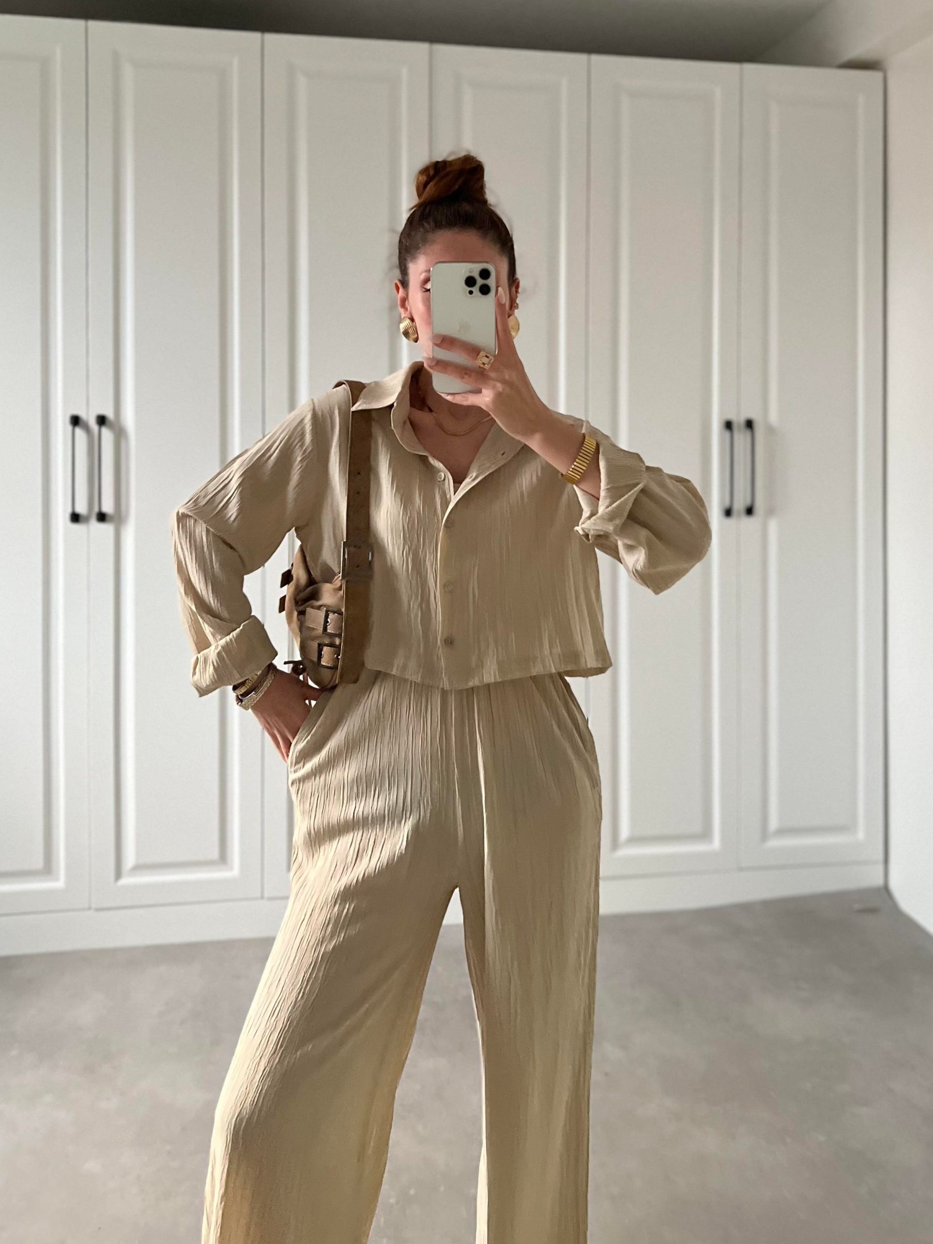 Ana Sayfa Takım Taş Gofre Crop Gömlek Takım