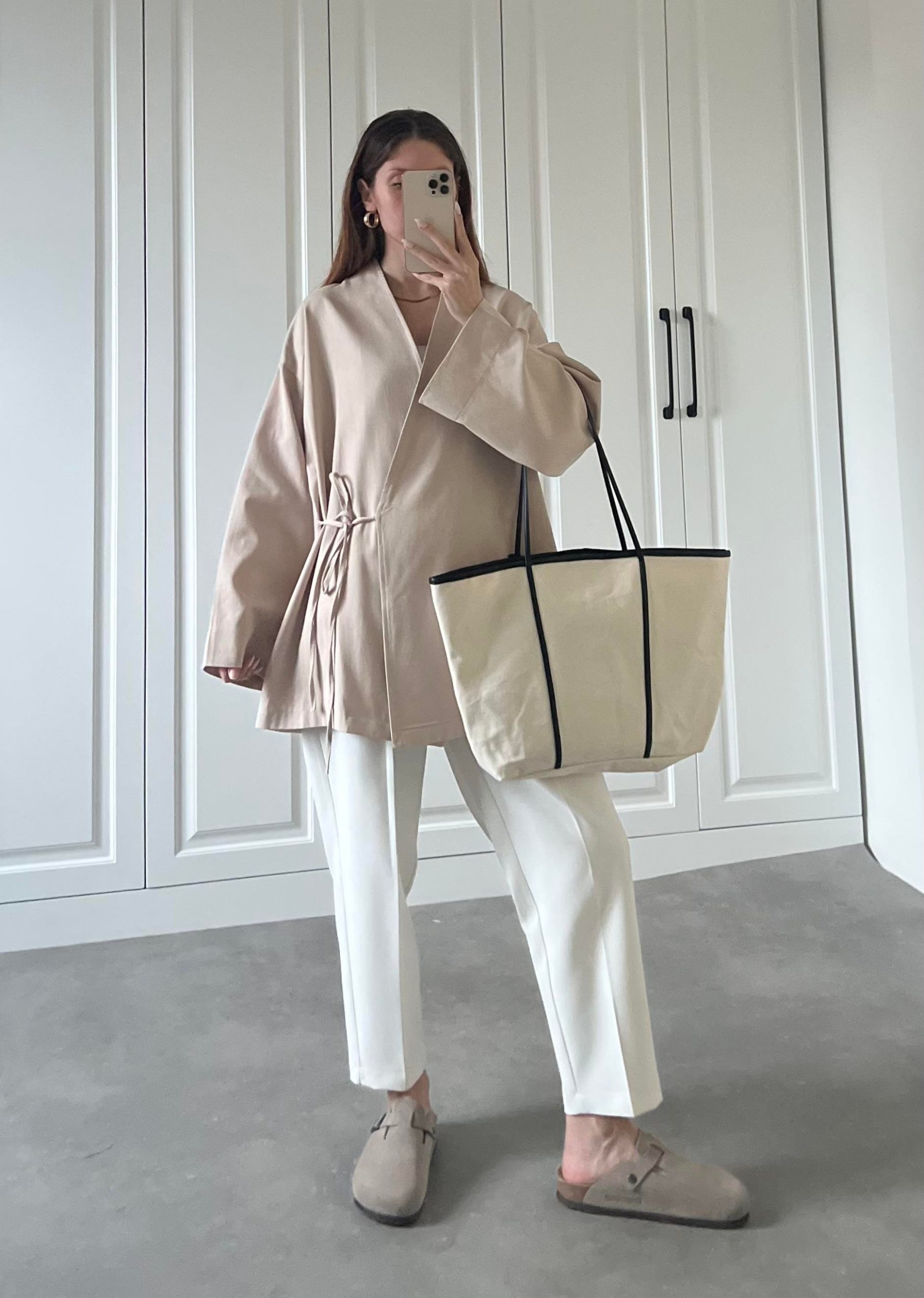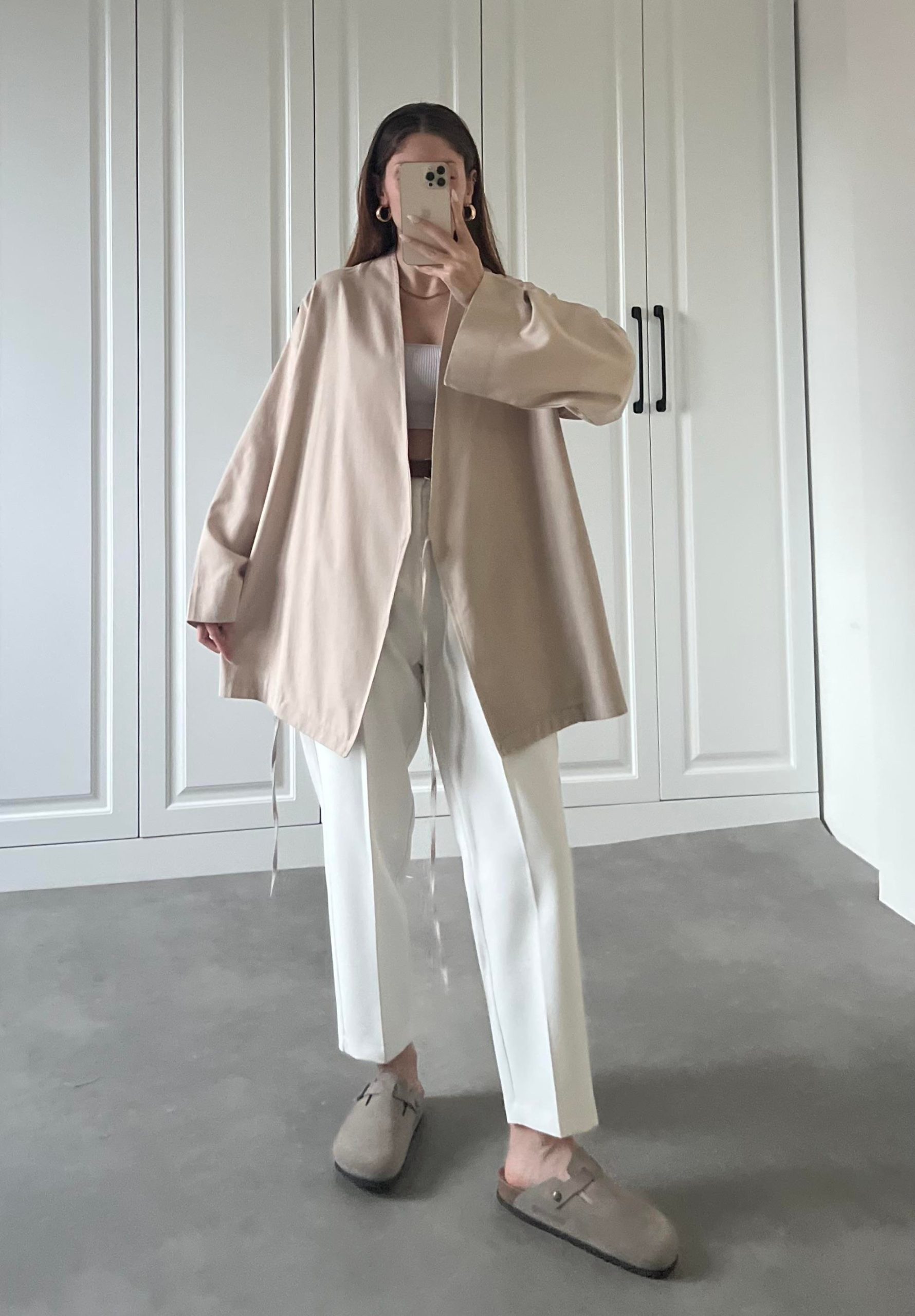 Ana Sayfa Yeni Sezon Taş Yandan Bağlamalı Gabardin Kimono Ceket