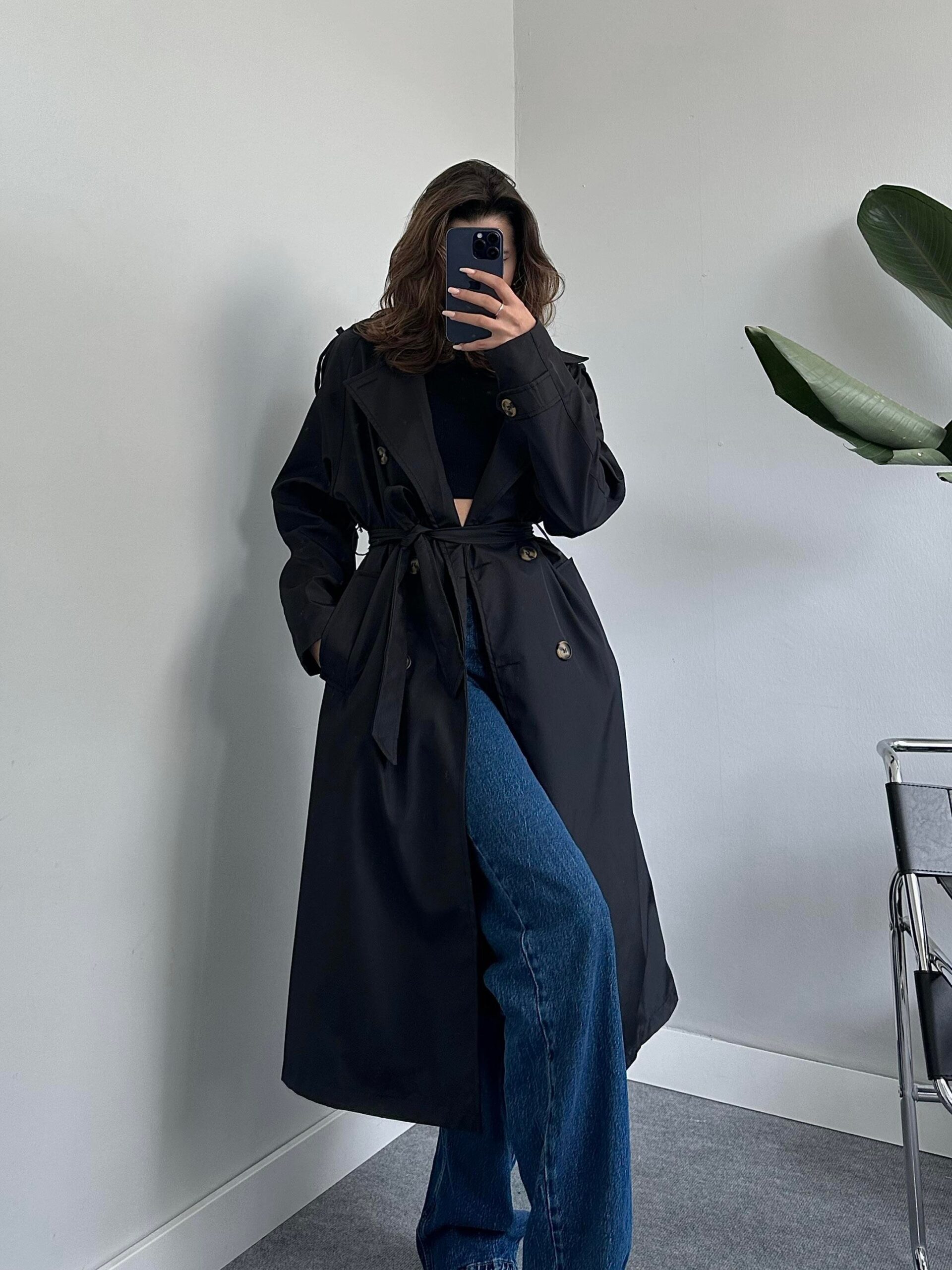 Tegan Siyah Trençkot