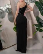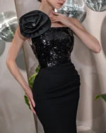 •𝗨̈𝗿𝘂̈𝗻 𝗱𝗲𝘁𝗮𝘆𝗹𝗮𝗿ı: Üst pul payet alt etek örme atlas  kumaş tek omuzda büyük saten çiçek detay, kruvaze yırtmaç, sırttan gizli fermuar  mini astar