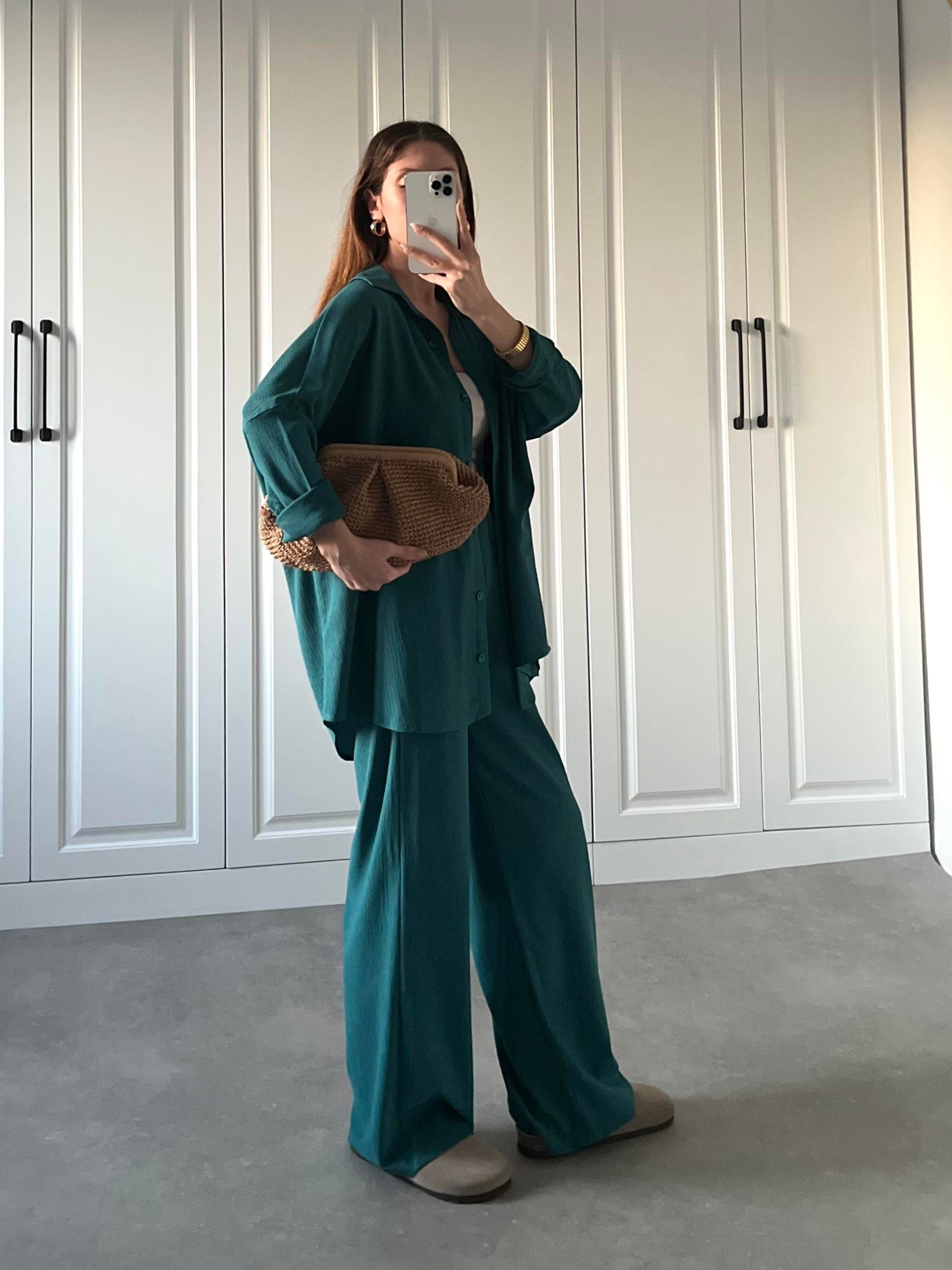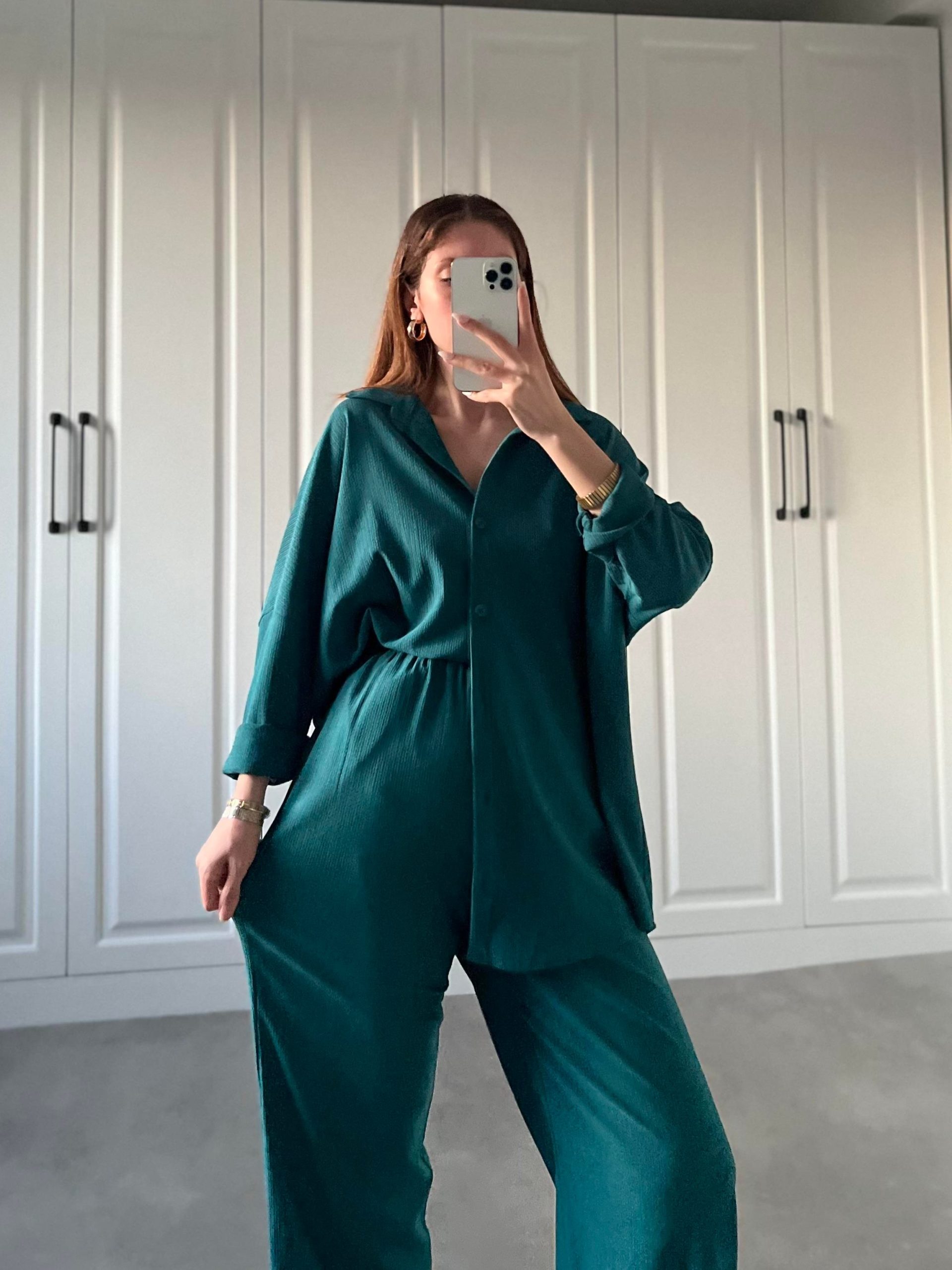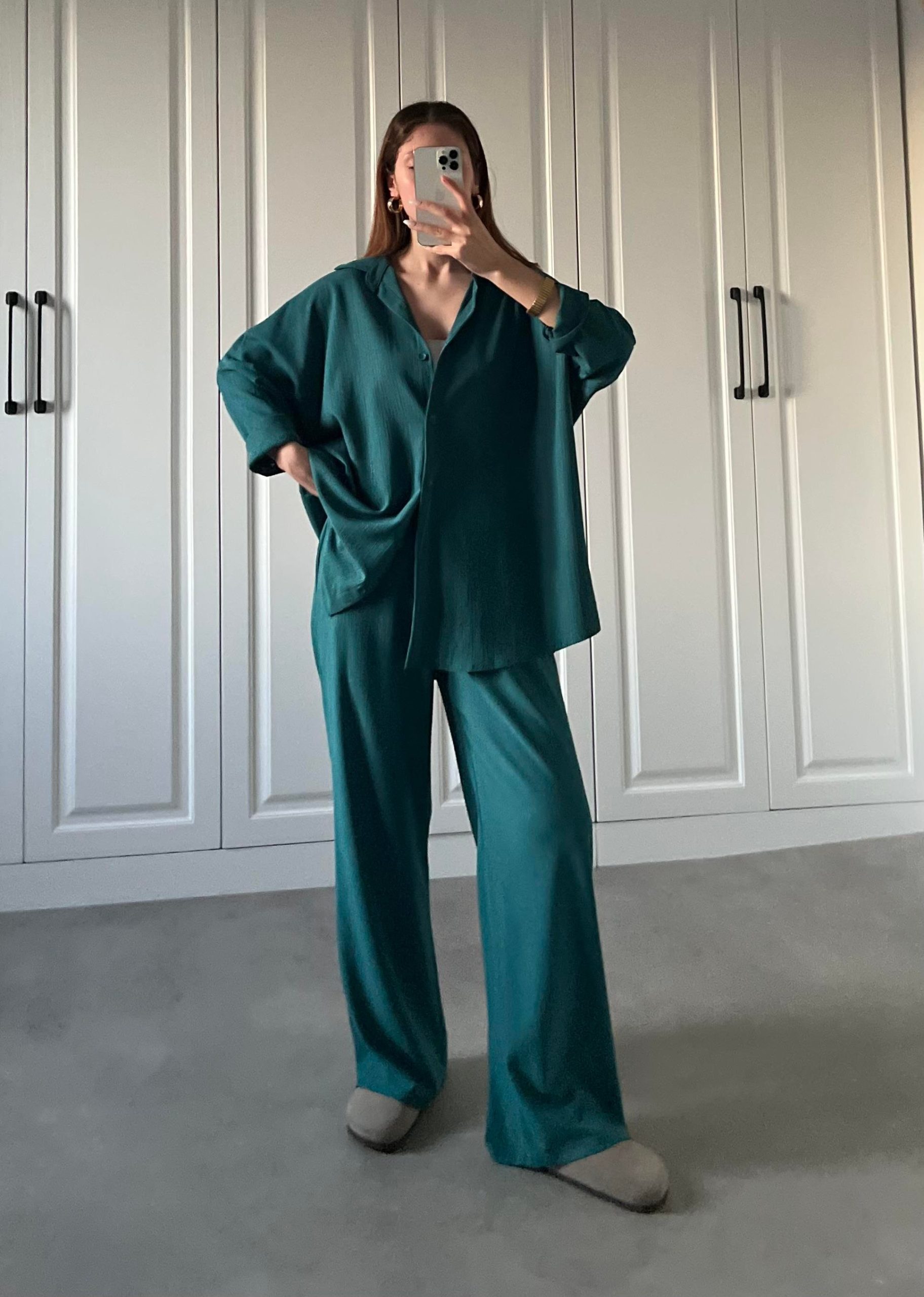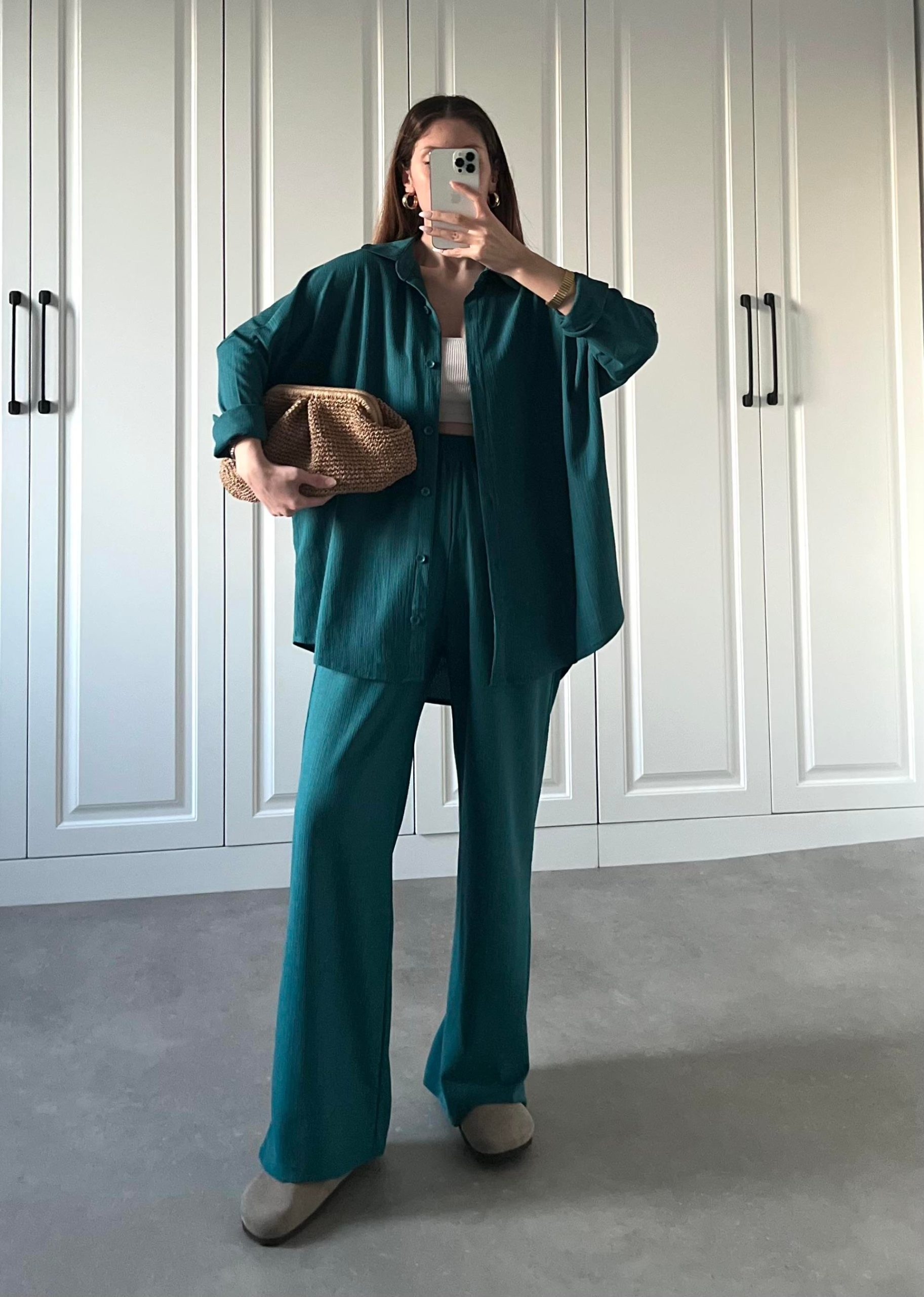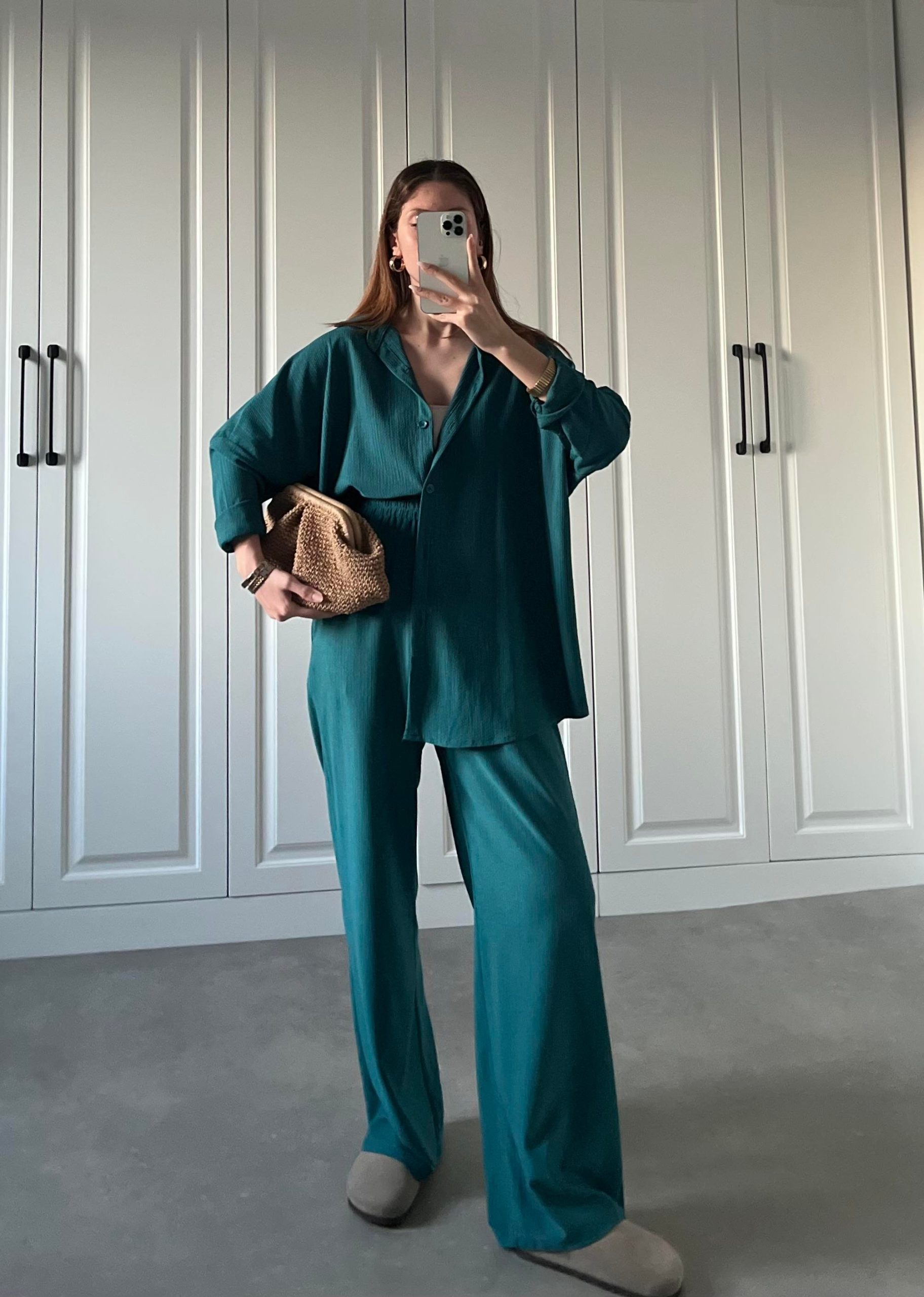 Ana Sayfa ÇOK SATANLAR Turkuaz Krinkıl Basic Gömlek Takım