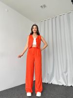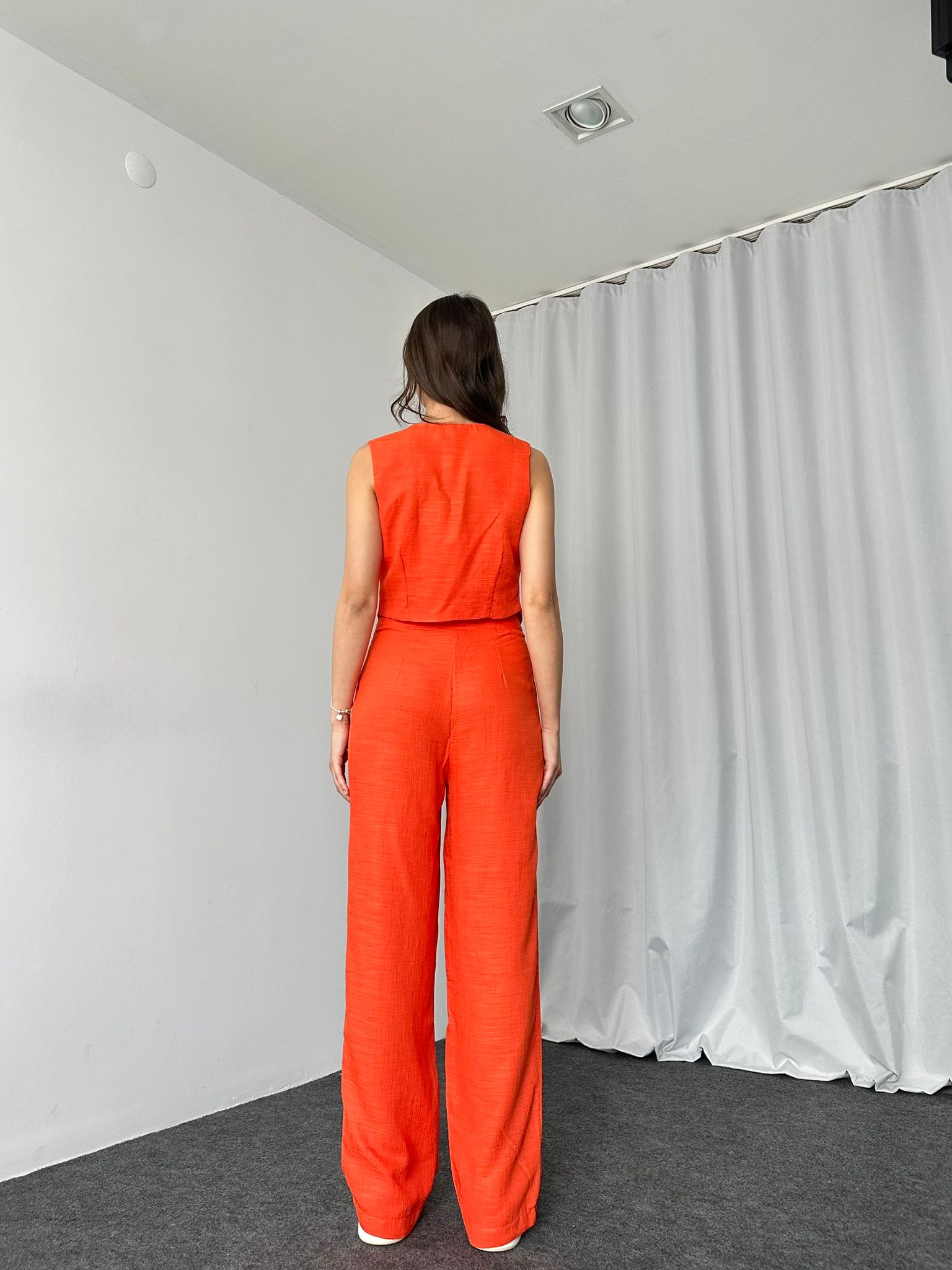 Fuşya Bel Detaylı Plazzo-Yelek Takım