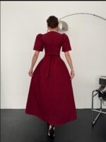 Ana Sayfa YENİ GELENLER Twila Balon Kol Bağlamalı Bordo Uzun Elbise