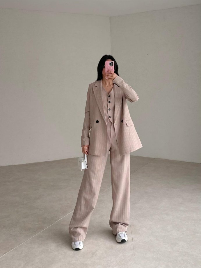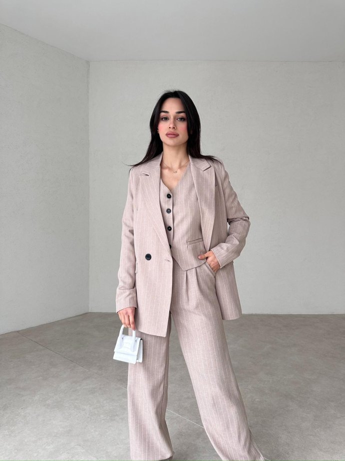 Çizgili Üçlü SALLY Takım tam kalıplıdır.