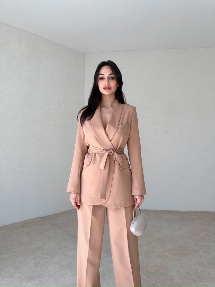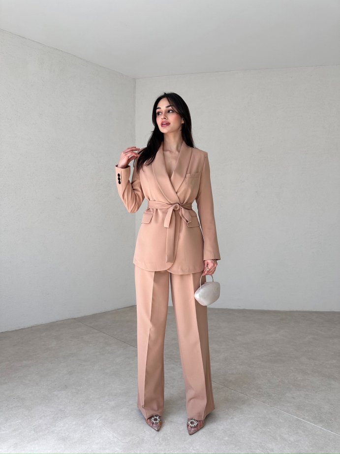 Cappuccino Beli Kemerli Gofre İkili Takım