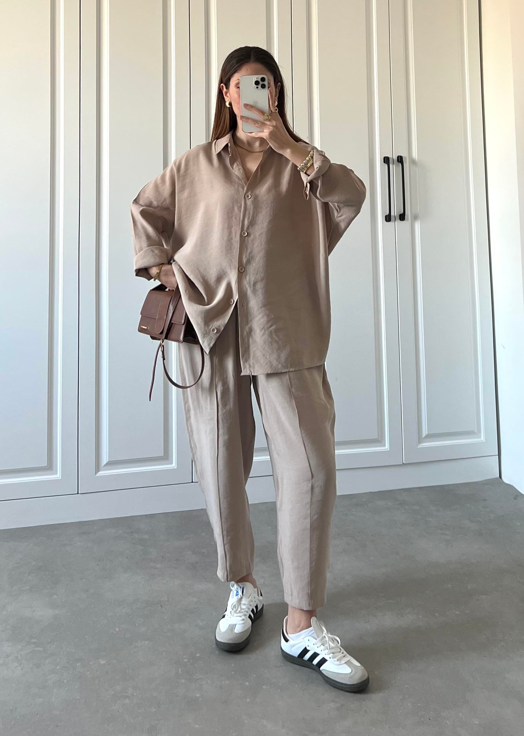 Vizon Ravi Tensel Kumaş Çımalı Şalvar Takım