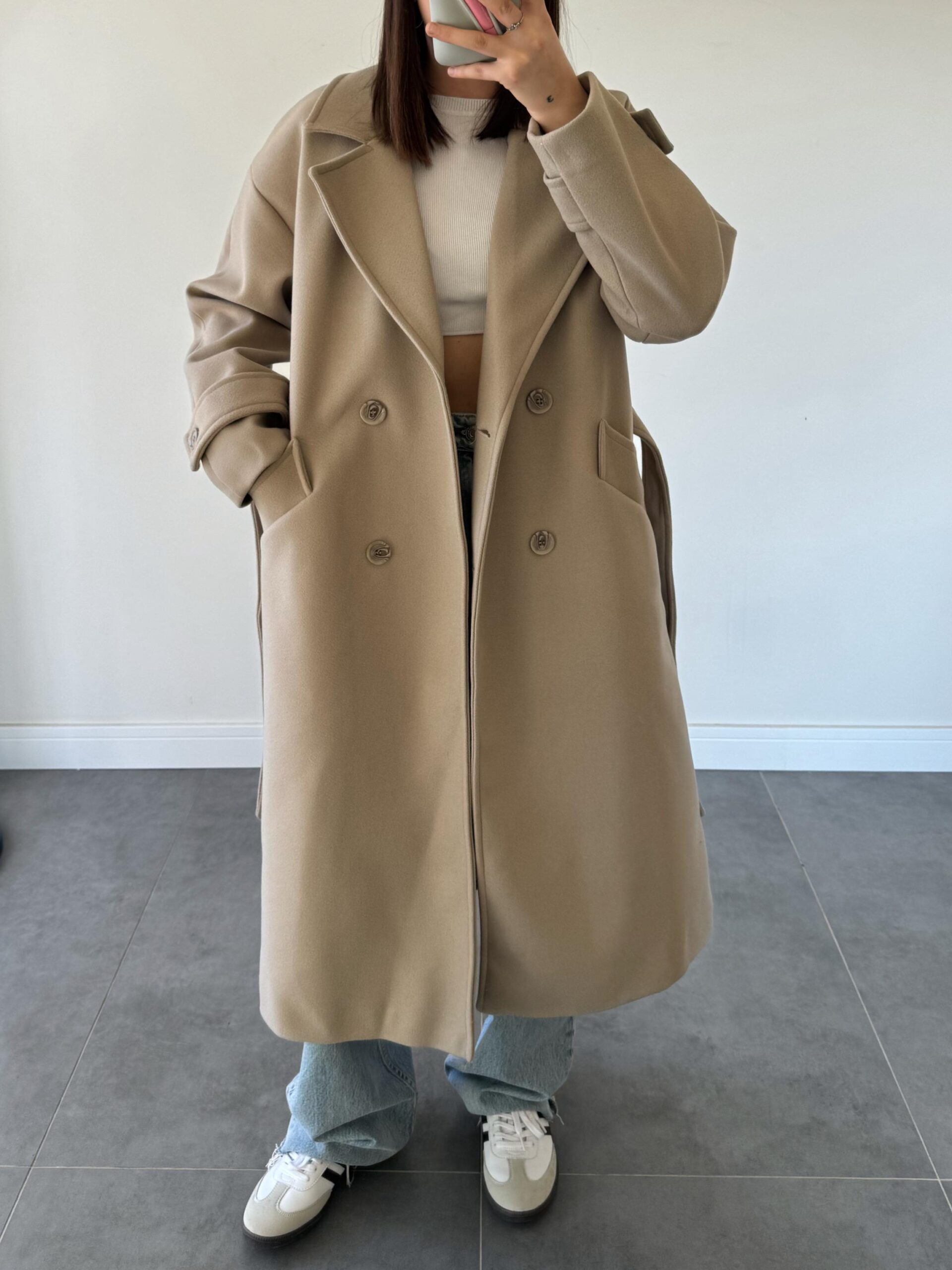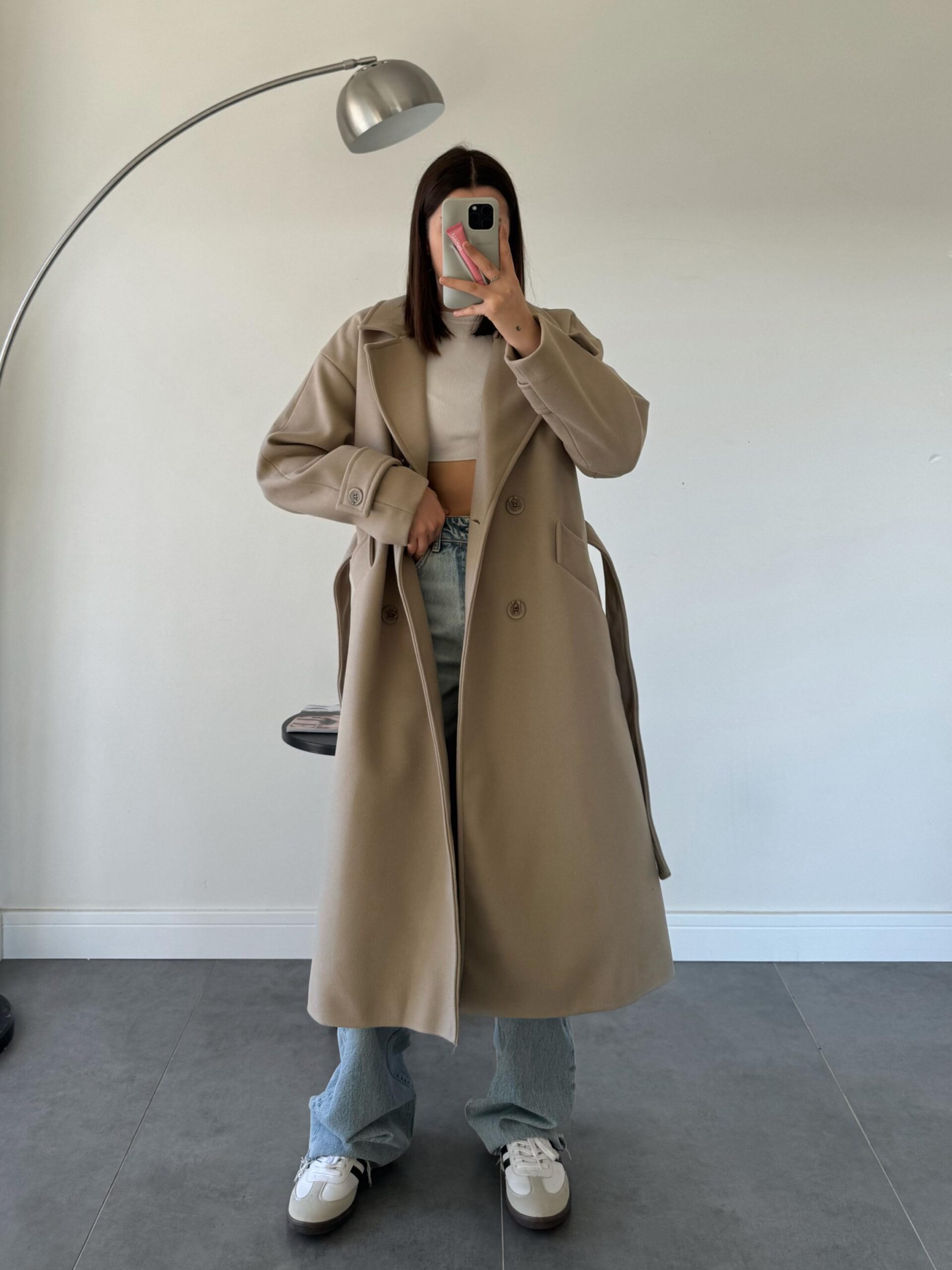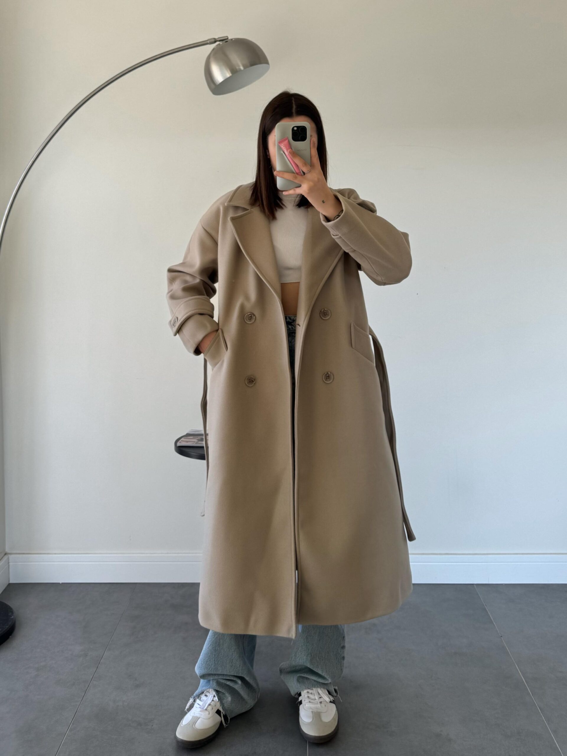 Wessa Bej Düşük Omuz Detay Kaşe Kaban