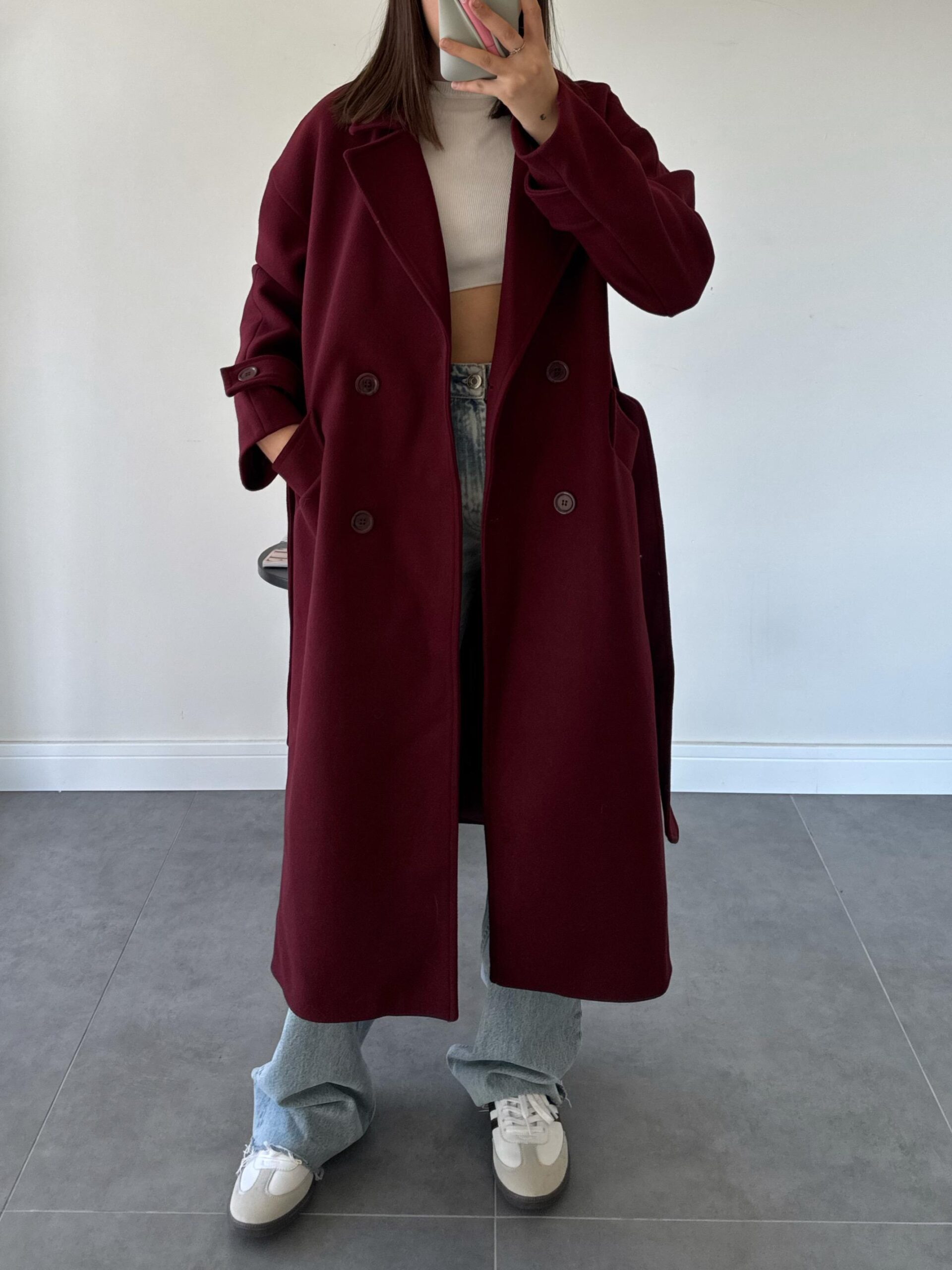 Wessa Bordo Düşük Omuz Detay Kaşe Kaban