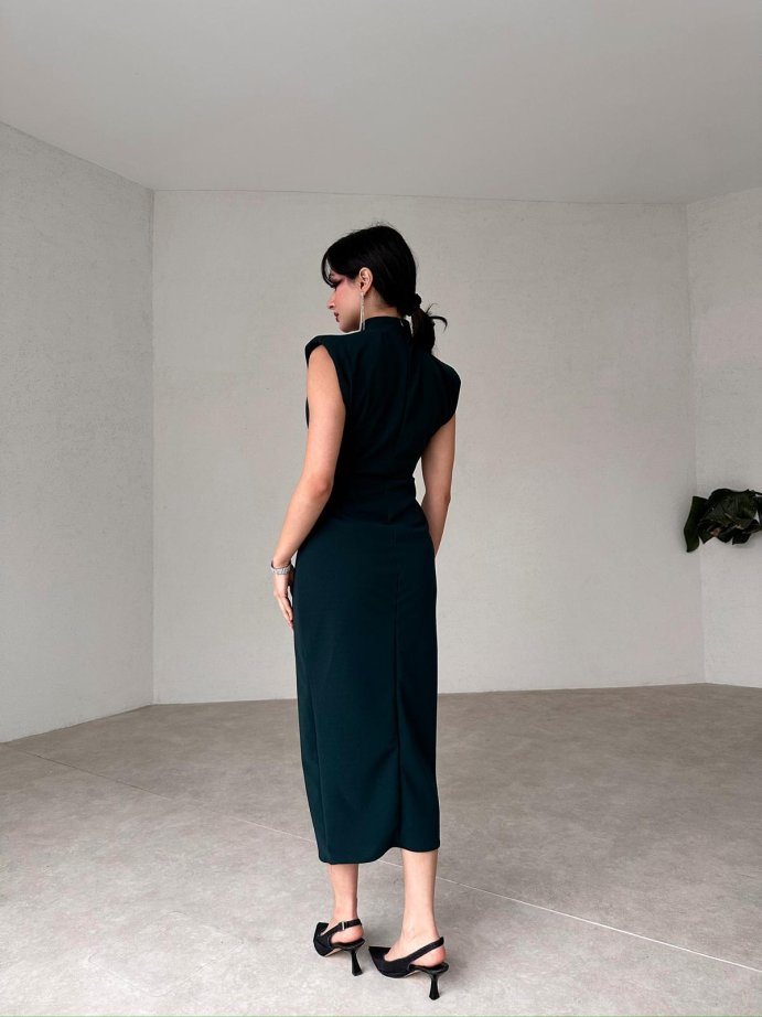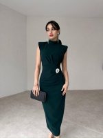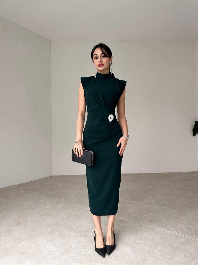 Broş Aksesuarlı Midi SİLANA Elbise tam kalıplıdır.